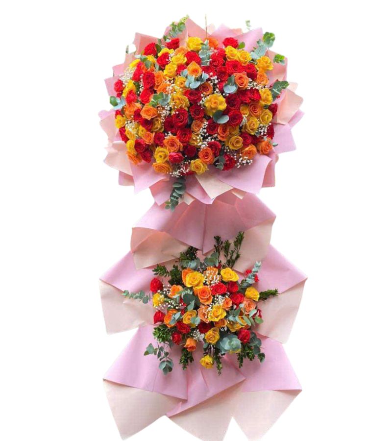 Kệ Hoa Chúc Mừng Tone Hồng Đỏ 2 Tầng lý tưởng cho:- Các công ty đang tổ chức lễ khai trương, sự kiện lớn.